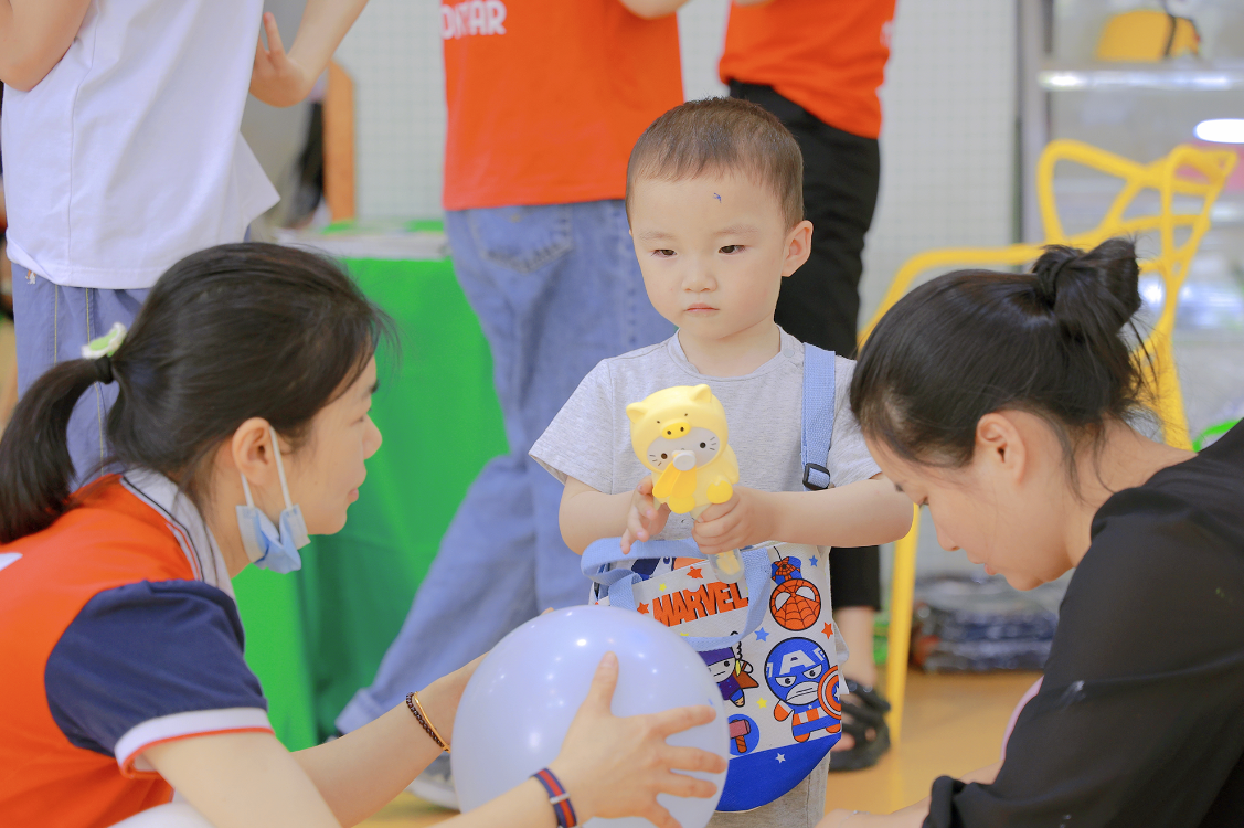 活动还未开始,宝贝和爸爸妈妈们已经在签到处集合,现场人头攒动,热闹非凡。