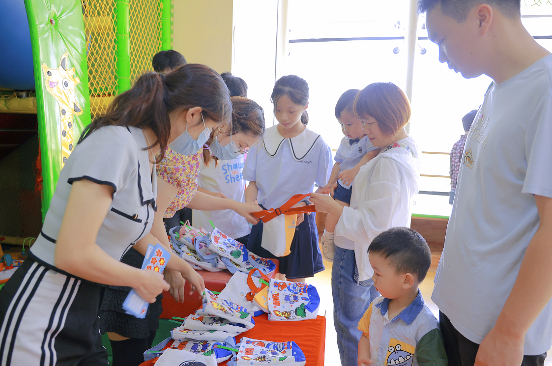 活动还未开始,宝贝和爸爸妈妈们已经在签到处集合,现场人头攒动,热闹非凡。